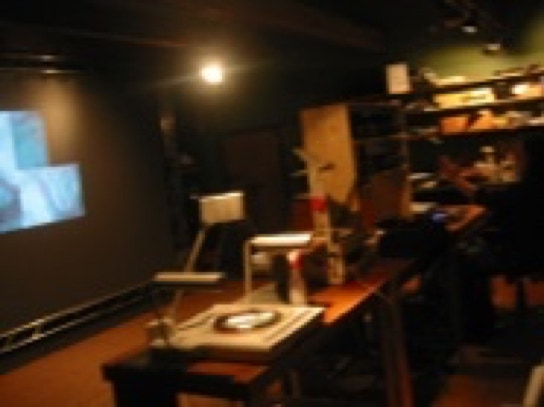 Projected on a rear projection screen and recorded to digital video
